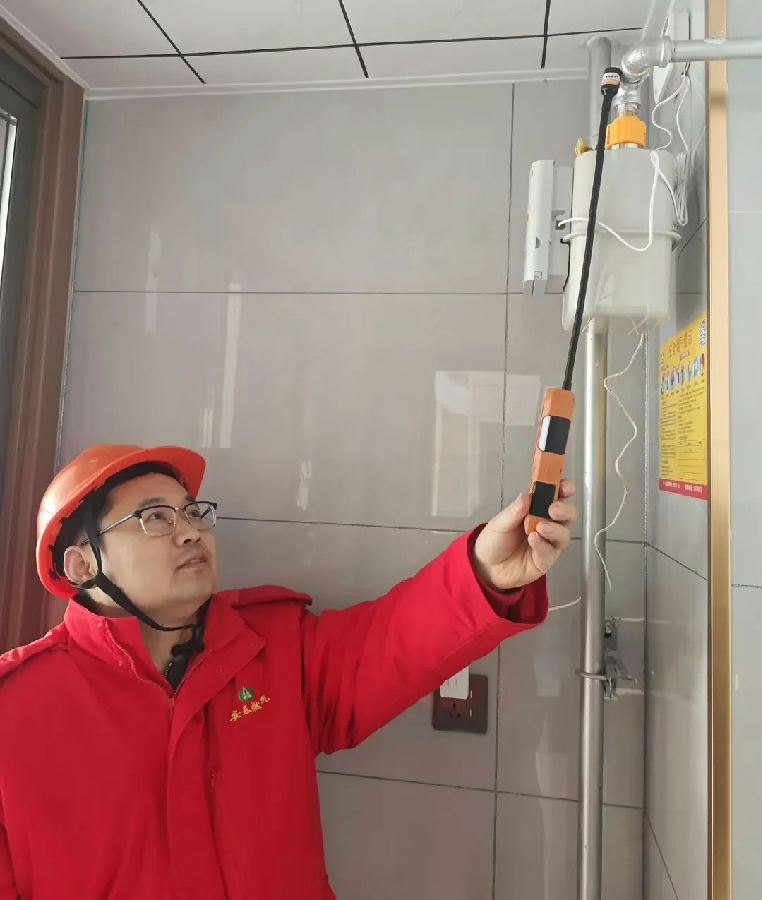 02入戶后,燃?xì)獍矙z人員使用專業(yè)儀器,逐一檢查燃?xì)夤艿澜涌诩叭細(xì)饩叩热細(xì)庠O(shè)施是否漏氣或存在安全隱患,同時(shí)向用戶講解燃?xì)獍踩脷庵R(shí)。